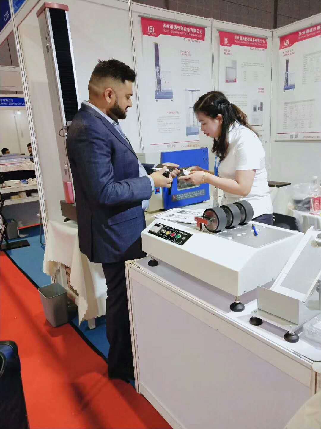 展会期间,众多国外客户咨询拉力试验机,我司销售人员现场示范讲解操作,热情接待每一位客户