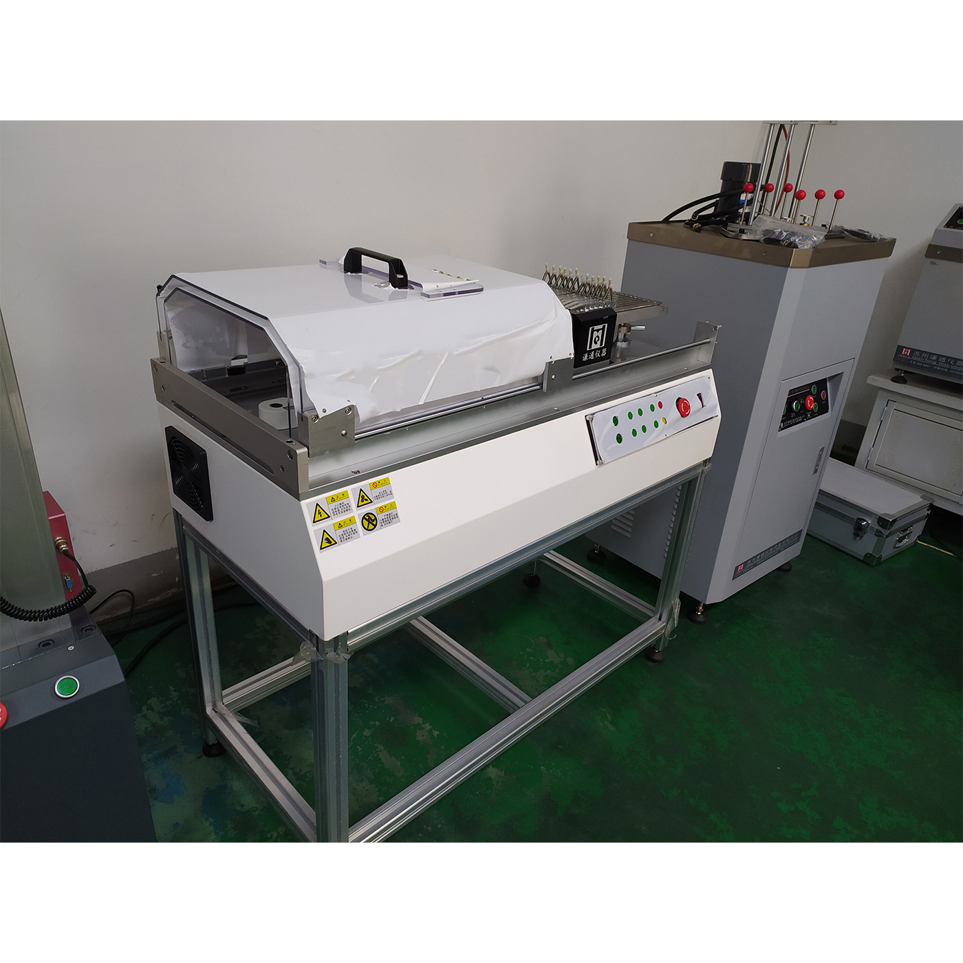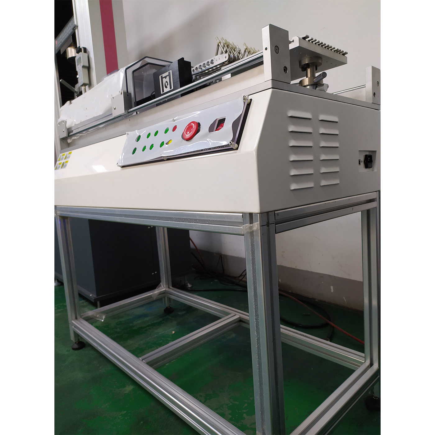 2、 机台配备标准铝合金机架,无需单独放置在桌子上且符合160-175mm身高人员操作,